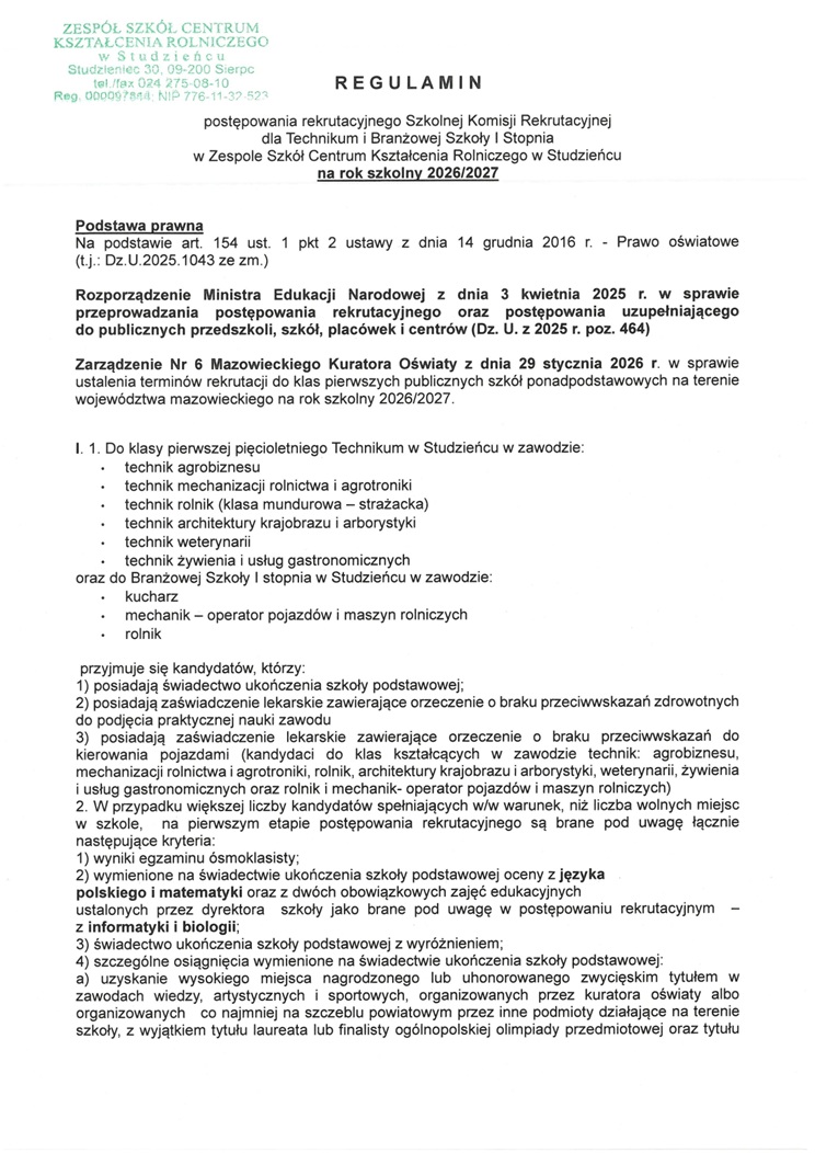 w Zespole Szkół Centrum Kształcenia Rolniczego w Studzieńcu