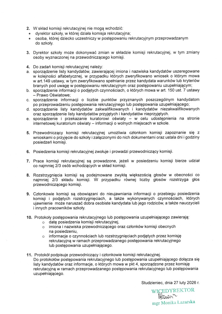postępowania rekrutacyjnego szkolnej komisji rekrutacyjnej dla